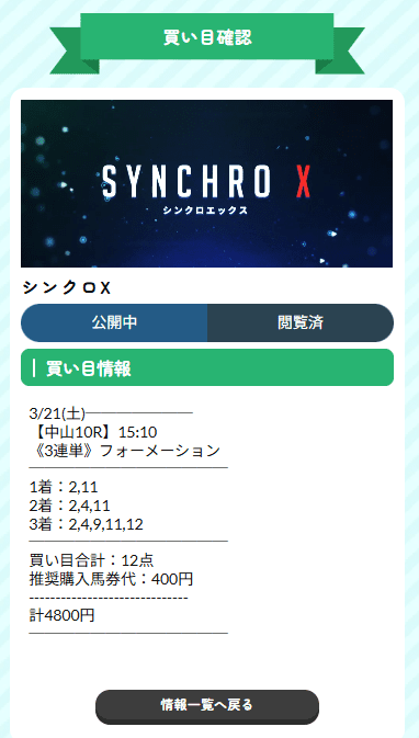 購入情報名:シンクロⅩ