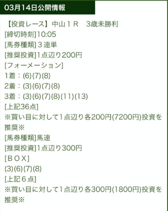 中山6Rと中山12Rの2鞍的中