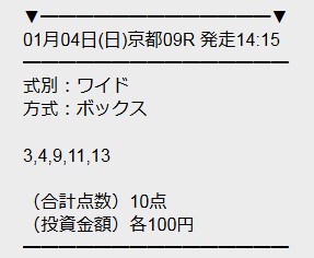 無料予想でいきなり京都9Rのワイドを3種完全的中