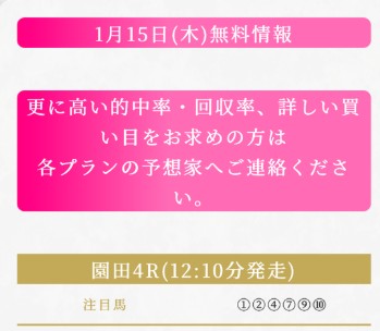 15日(木)の初代女性予想師集団の無料予想に参加をしたら