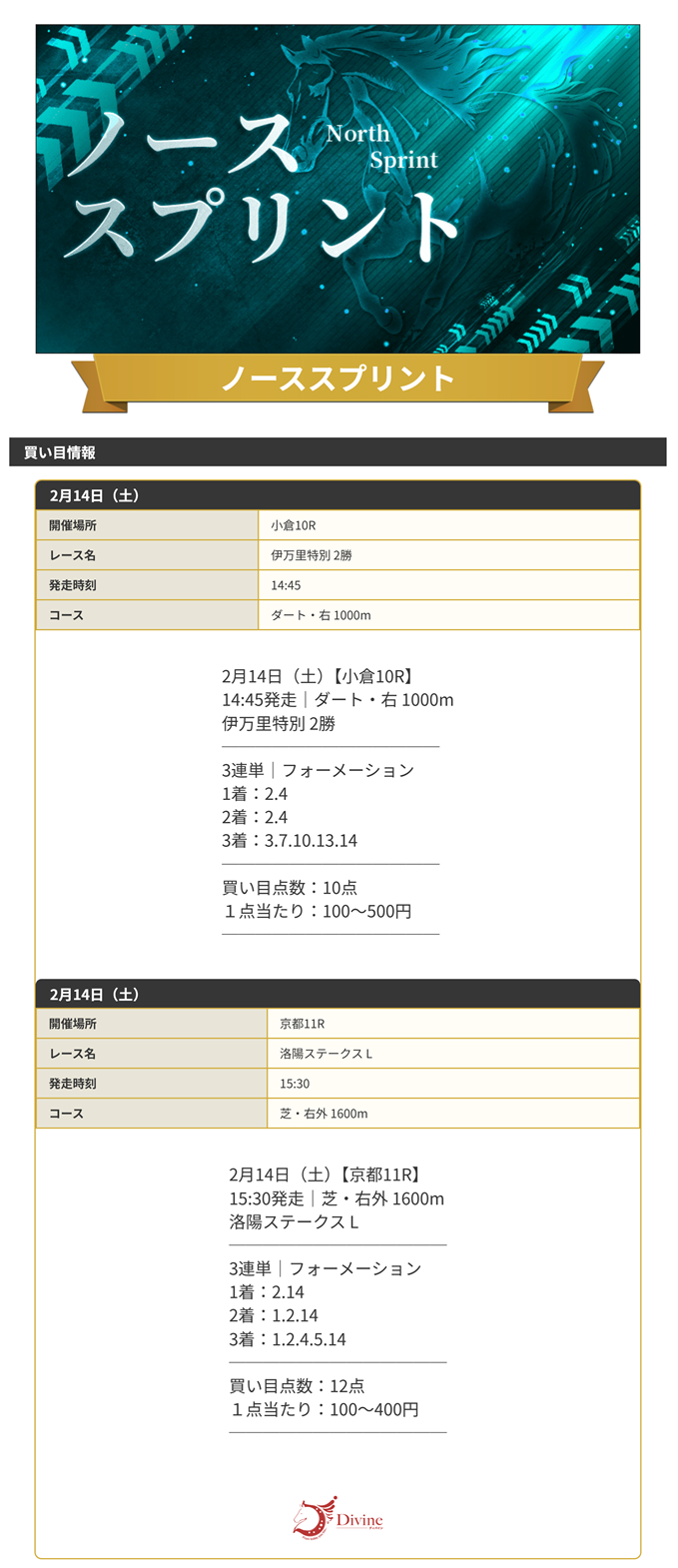 良い年末を迎えられそうな無料予想的中を届けてくれたディバイン