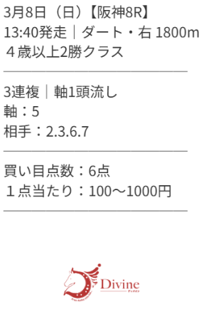 買い目点数6点で9頭立ての8日(日)の阪神8R