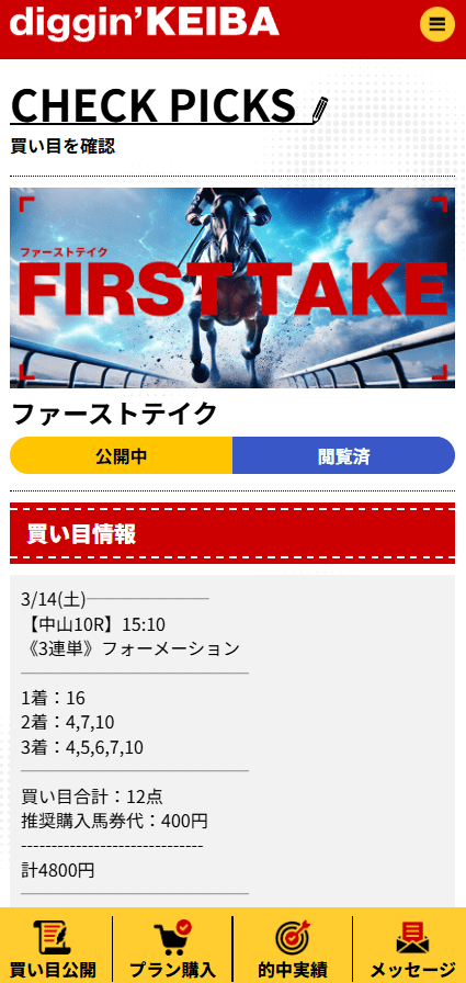 自分は競馬でも株でも、結局はリスクリワードの設計を見るタイプです。だからファーストテイクの中山10Rはかなり評価しています。1着16番が11番人気、2着7番が1番人気、3着6番が3番人気。この並びを12点で取るのは、ただの穴狙いでは無理です。1番人気を2着に落として、11番人気を頭に据える発想があって初めて届く配当でした。400円で乗って68万4680円までいったので、これは配当を取りにいく買い目としてかなり完成度が高いと思いました。
