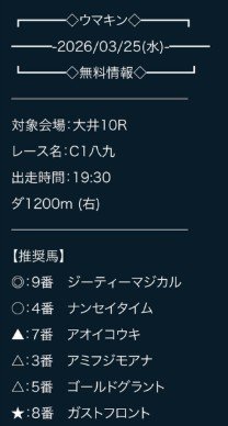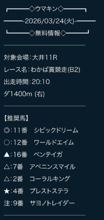 ウマキンはそのレースの1レース前の浦和10Rの買い目を公開