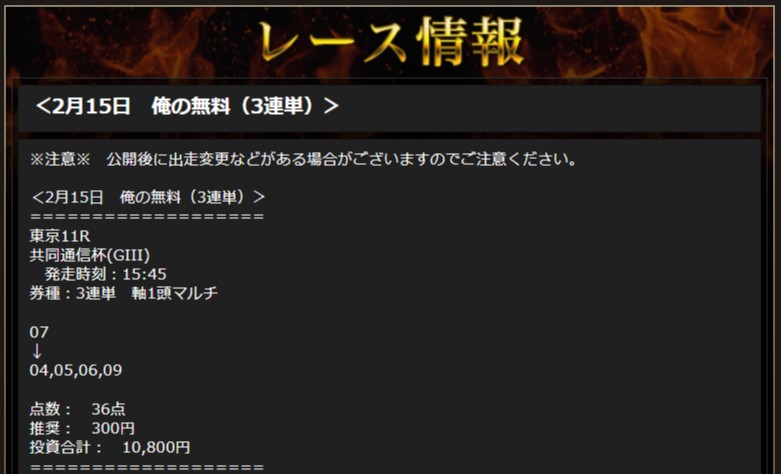安定と安心を無料予想で届けてくれる!しかも最近馬帝国管理人が自腹検証をし